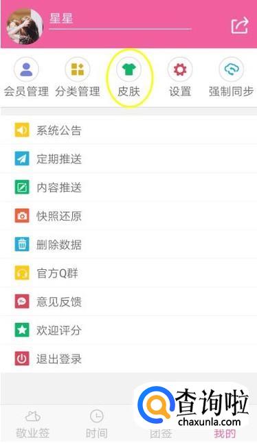 点击黄色圈住的“皮肤”,进入皮肤设置界面。