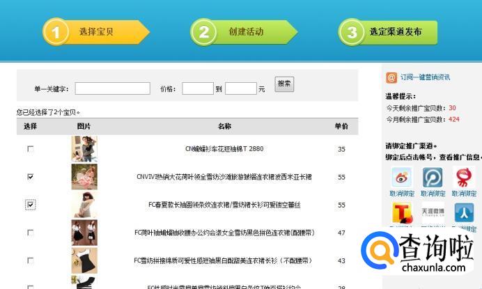 选择完”我的宝贝“之后,点击我们需要推广的商品,在小方框前面打勾就可以了。