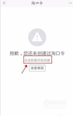 进入“淘口令”界面,选择最下方“新建”按钮,因为你是第一次使用,不会出现其它内容。