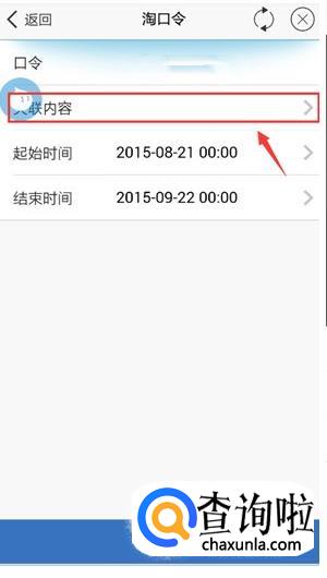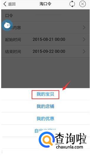 然后就出现”淘口令“空白页面。可以开始配置”淘口令“,在口令的地方,输入你的口令内容。选择关联内容。比如:选择的是“我的宝贝” 你可以选择你想选择的推广的内容。