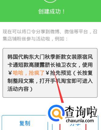 点击确定,淘口令就会出现在你的店铺啦。