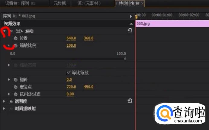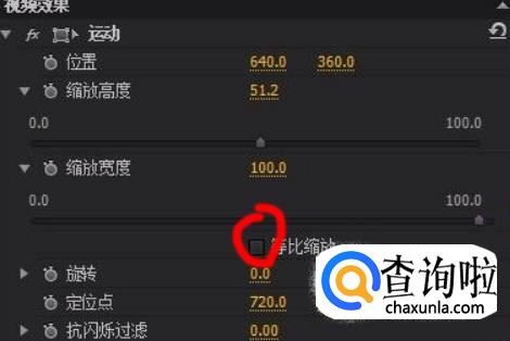 点击“运动”前面的小三角,再点击缩放比例前面的小三角。