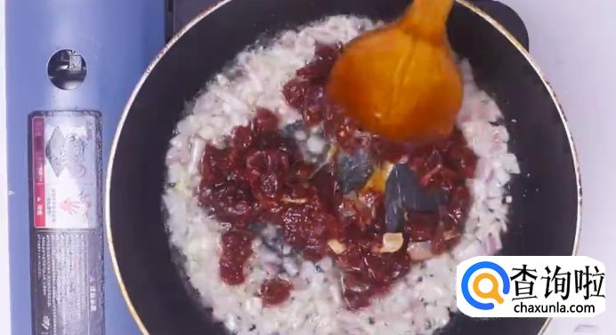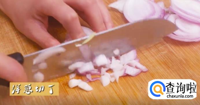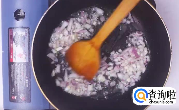 锅里热好油,将切好的洋葱倒进去,不断翻炒。