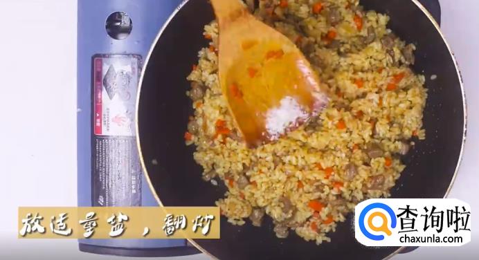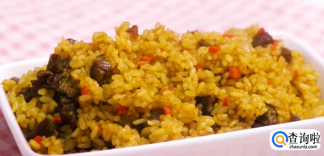 翻炒完成后出锅装盘,这道咖喱牛肉炒饭就完成了。
