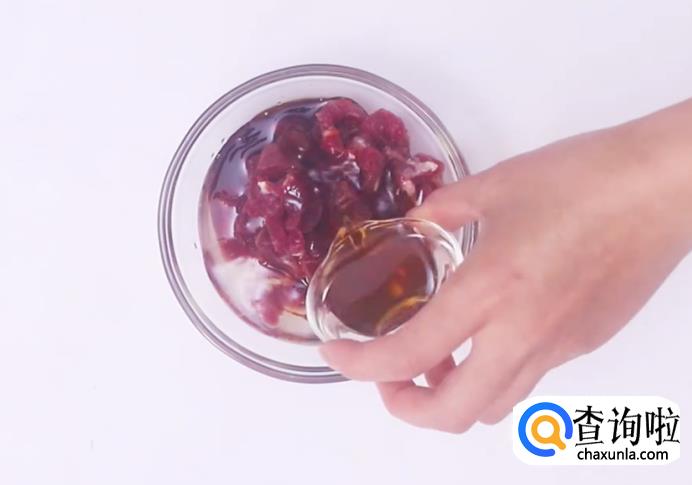 将切好的牛肉块装进碗里,加入蛋清、生抽、料酒和胡椒粉,然后将料和牛肉混合均匀。