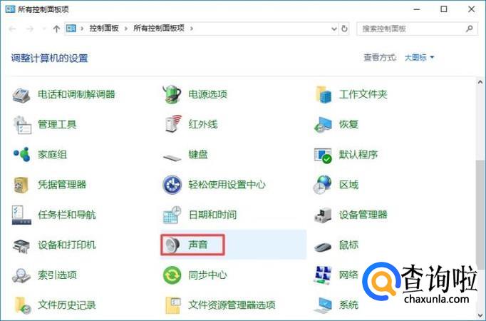 进入控制面板之后,我们点击声音;
