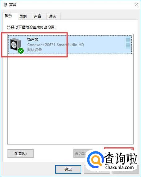 弹出的界面,我们点击扬声器,然后点击属性;