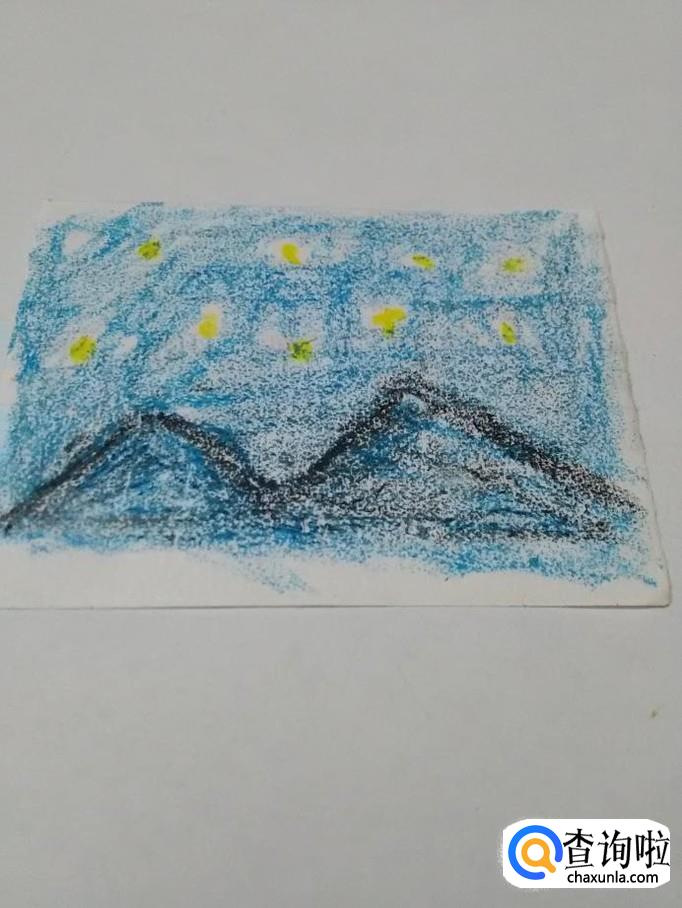 用油画棒画星空,先画星星,再画夜幕,下面就来画星空。