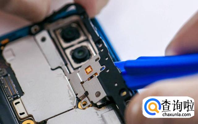 使用撬棒拆除前后置摄像头压板,取下摄像头。具体操作是用撬棒依次撬开后置AI双摄像头FPC插头、前置FPC插头,并依次取出。