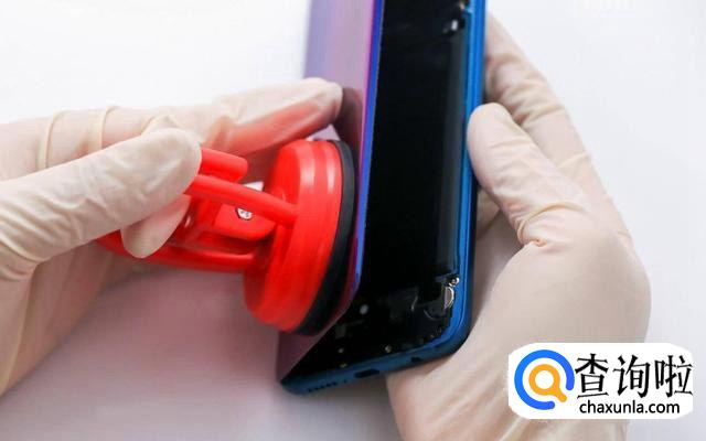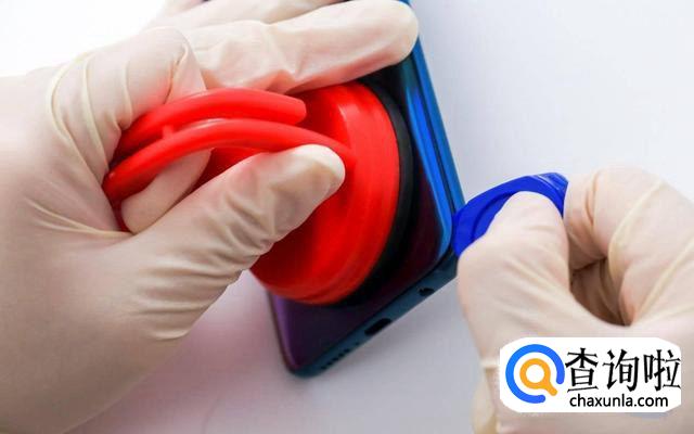 然后拆后盖,荣耀10采用的是玻璃后盖,并通过胶固定,我们需要先通过加热台软化胶,然后通过吸盘和塑料拨片拆开,如下图所示。