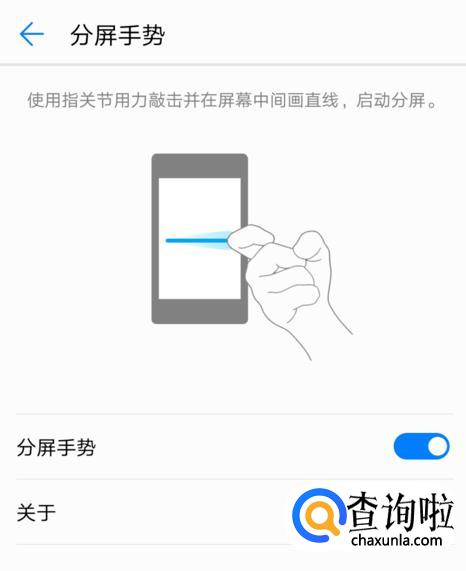 首先我们点击设置,点击智能辅助,点击快捷启动手势,点击分屏,将开关开启,在支持分屏的应用使用指关节敲击屏幕并在中间画一条直线即可。