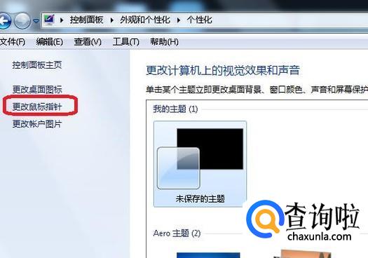 然后,我们在左侧栏就能看到“更改鼠标指针”选项了,我们点击进入。