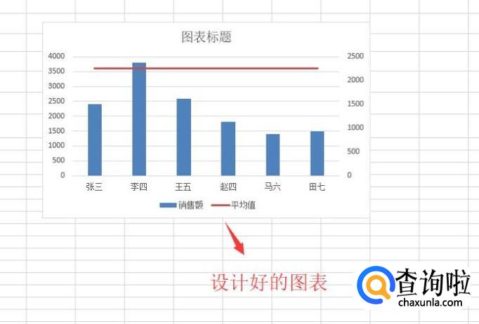 设置好次坐标轴以后,回到Excel中我们就可以看到柱形图已经有平均线了,如下图所示