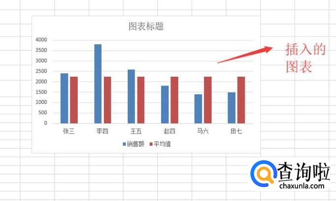 回到Excel界面中我们就看到了插入的柱形图了,虽然柱形图有了,但是平均线还是没有