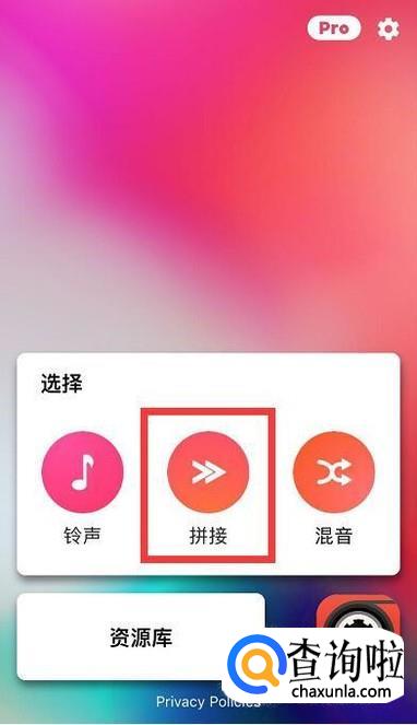 这里以两段音乐拼接为一段音乐为例子演示,点击拼接。