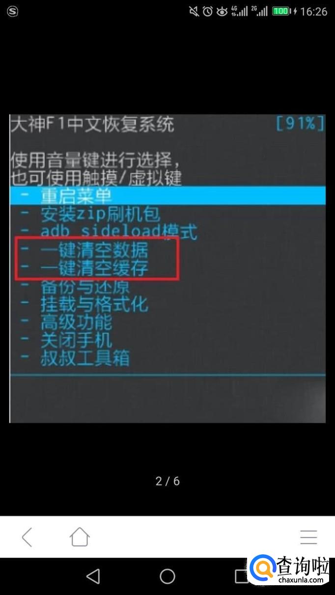 在Recovery模式下我们使用音量键控制,电源键确认,依次选择“清空数据”、“清空缓存”