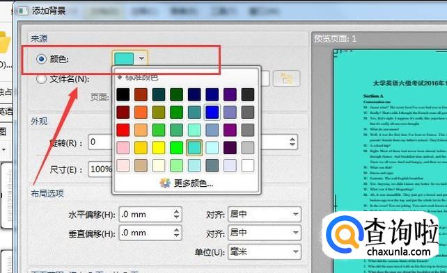 点击添加后,会显示添加背景的操作页面。点击页面最上方的颜色,选择想要添加的背景颜色。