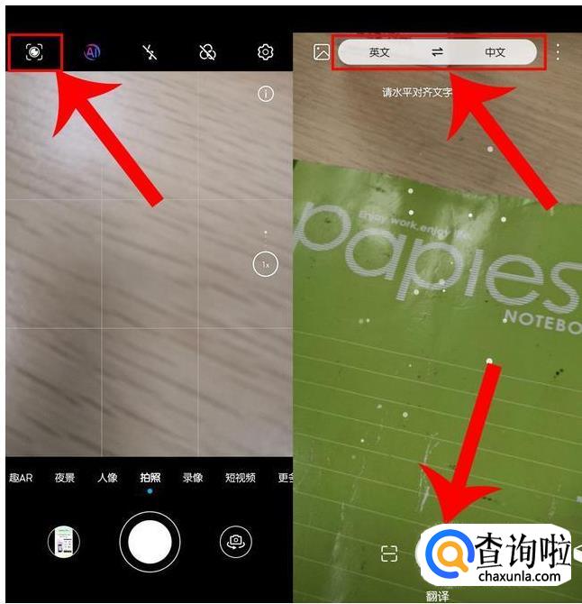 相机→左上角相机按钮(EMUI9.1是眼睛按钮)→选择翻译→将摄像头对不懂的英文单词→然后点击拍照即可。