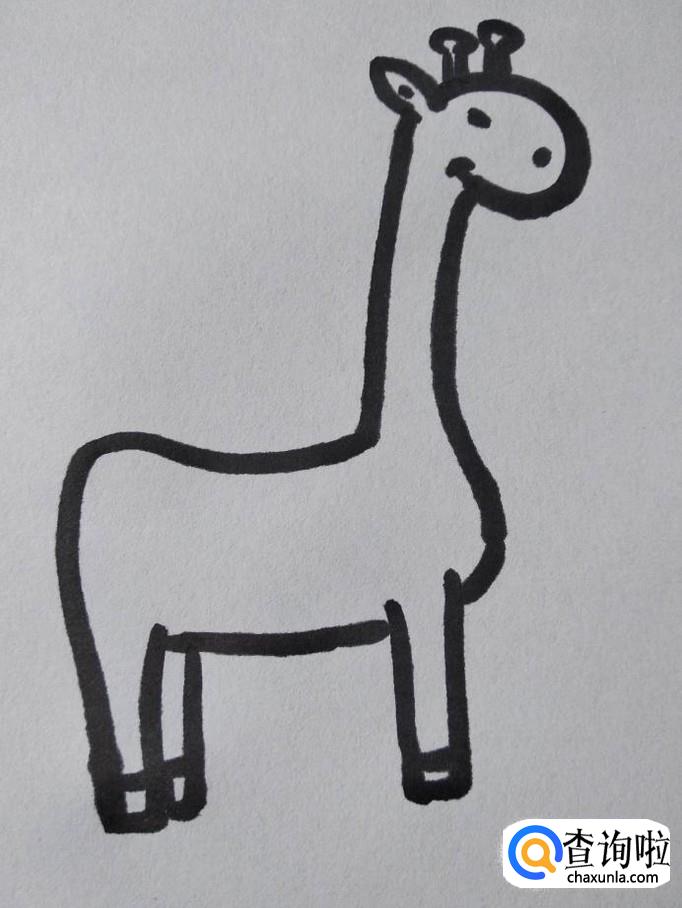 画长颈鹿时,四条腿要直一些,粗细均匀,长颈鹿看上去才健壮。