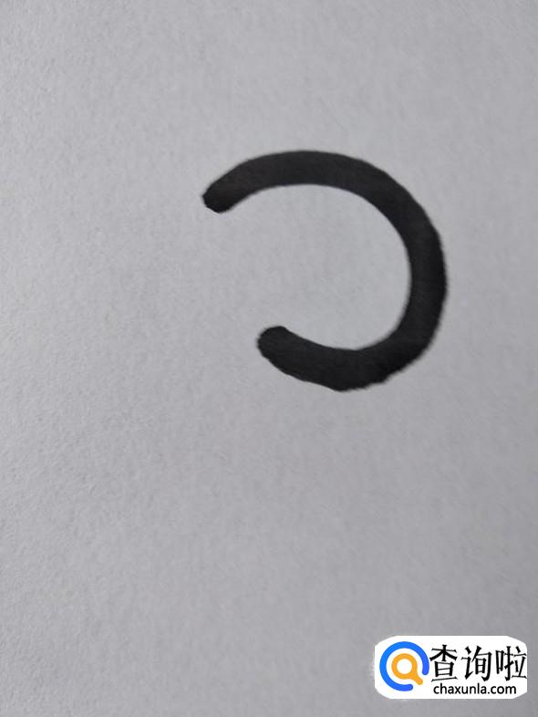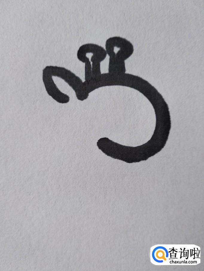 先画出一段弯弯的弧线,这条弧线线条流畅,一气呵成。从左端起笔,向右下画弧线上端弧度较为平缓,到右下的嘴巴位置弧度稍大一点向上弯曲,这条弧线作为长颈鹿的头部轮廓线。