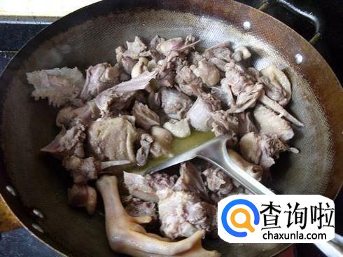 起锅烧油,将切好的鹅肉块进行翻炒。