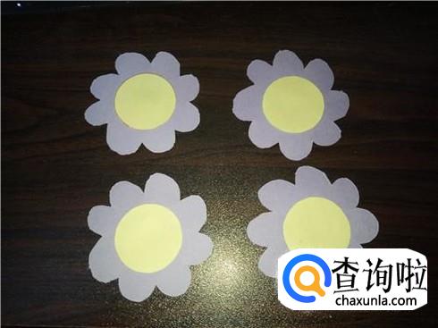 除此之外,我们还可以选用不同颜色的卡纸,裁剪出小花朵的样子。