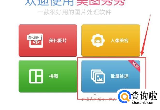 打开美图秀秀,点击右下方的“图片批量处理”,如图所示。