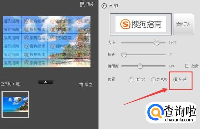 全屏水印选择平铺即可,如图所示。