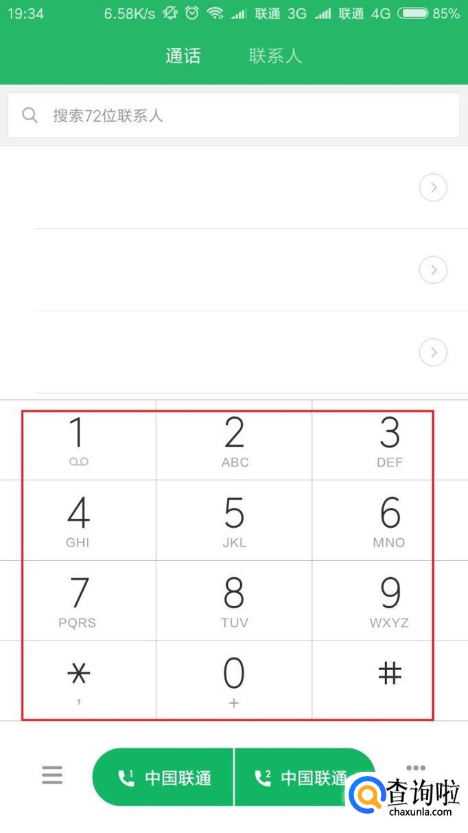 这里我以MIUI系统为例,打开手机中的联系人应用,打开拨号键盘,在拨号键盘中输入要保存的手机号码。
