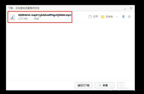 9、下载完成后,就会进入以下页面,就可以看到mp3格式已经下载,点击【文件夹】,就可以看到该歌曲的所在位置。