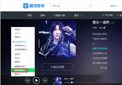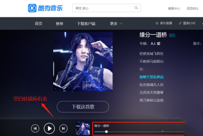 2、进入页面,打开你下载kgm的歌曲,先播放歌曲一段时间后,在空白处,鼠标右击。