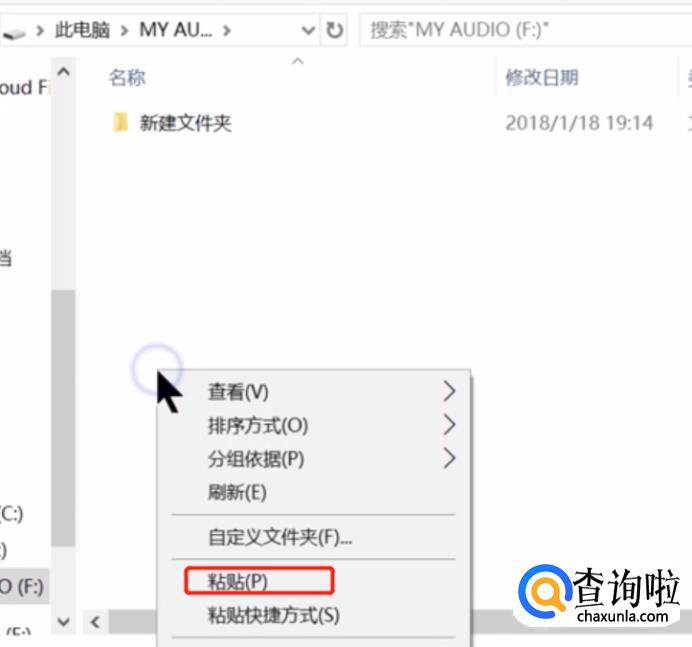 点击进入u盘,在空白处单击右键,选择粘贴。