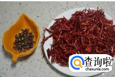 将买来的花椒干和辣椒干混合在一起,用清水清洗干净并控干,然后打碎它们,再放到盆子里面。