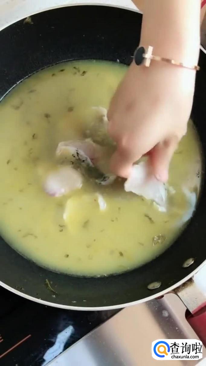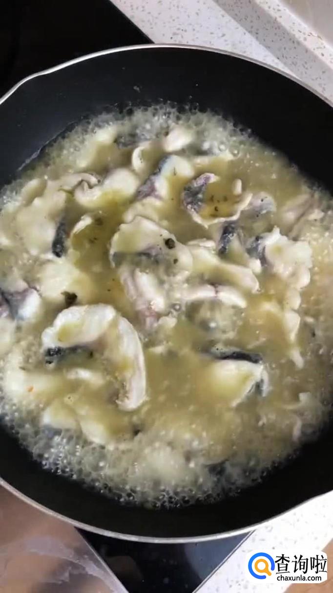 接着把鱼肉加入锅中烫熟,如下图所示。