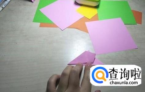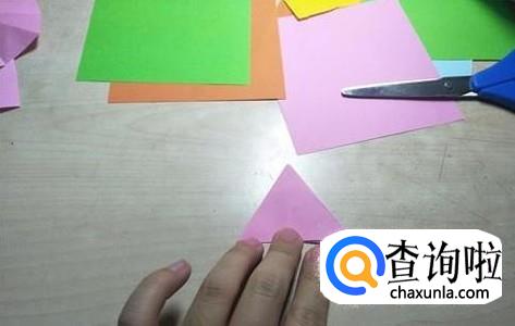 首先将一张正方形的纸片沿着中轴线进行对折,对折之后不要展开。