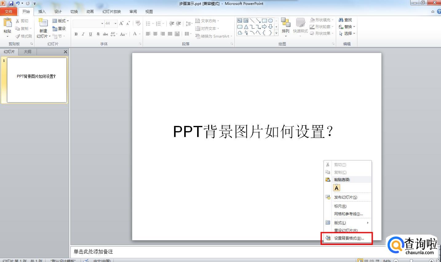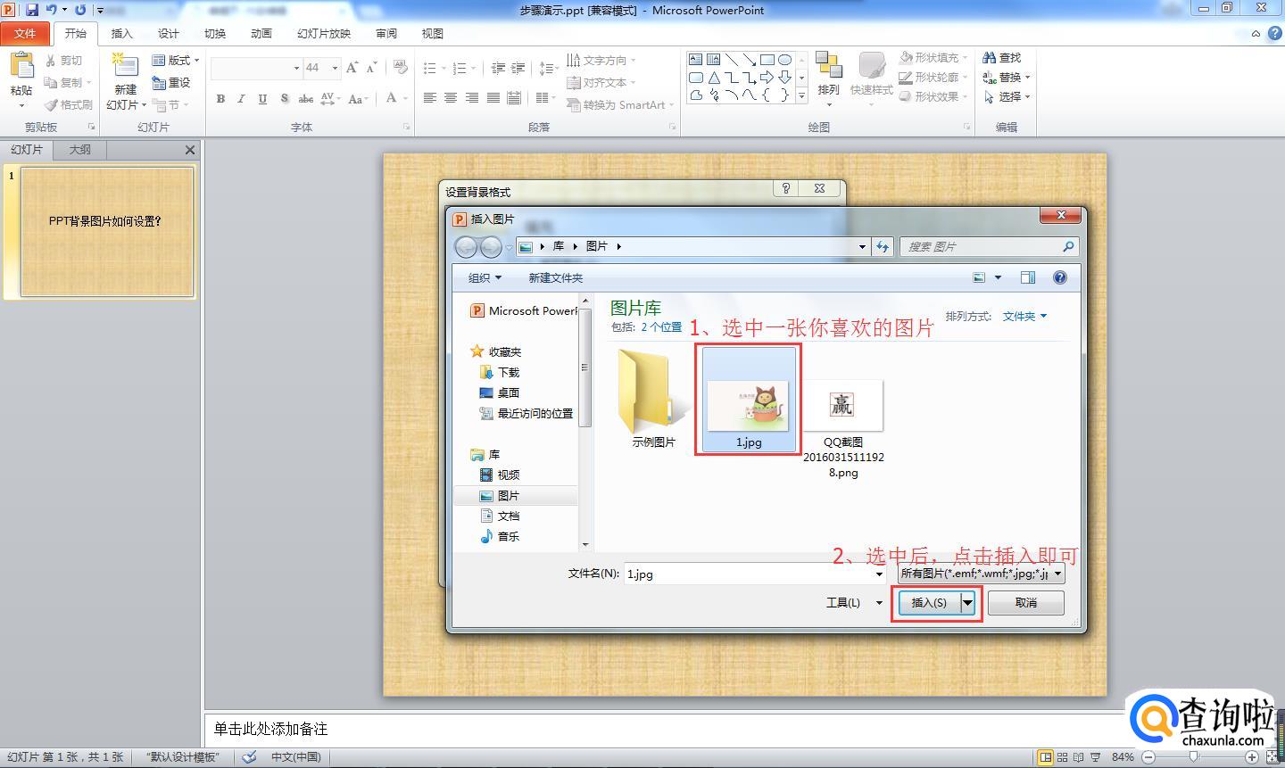 我看到了一张比较喜欢的图片,怎样把这张图片设置成为PPT背景呢?