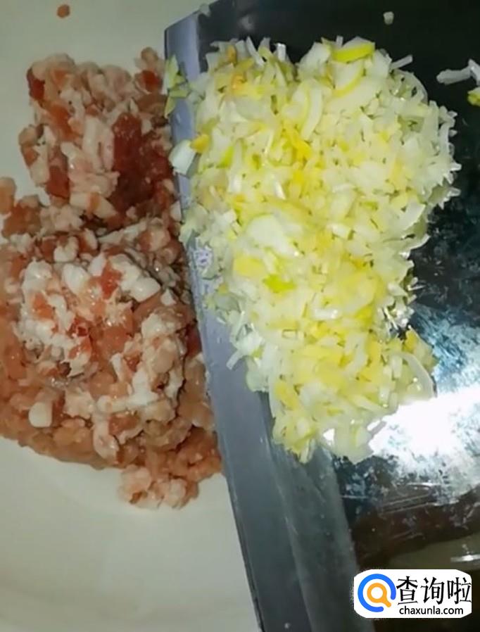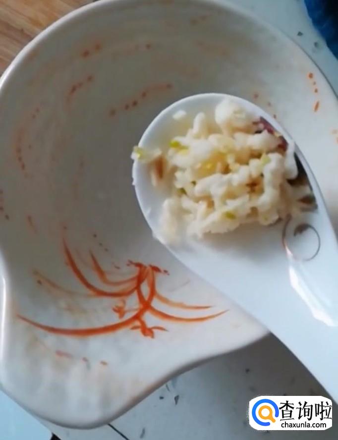 首先我们把肉泥放入一个碗中,加入适量的葱姜末
