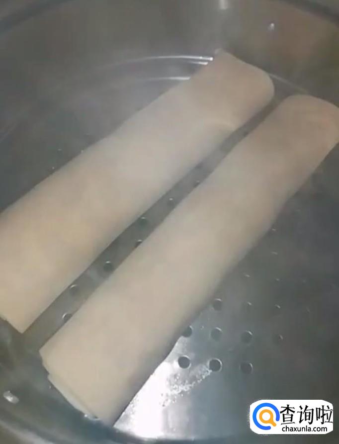 卷好以后我们把它放入蒸锅,蒸30分钟