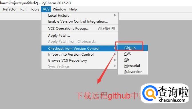 配置好以后我们点击顶部的VCS菜单就可以使用Github了,首先需要进行项目的检出,如下图所示,在Checkout From Version Control中选择GitHub即可