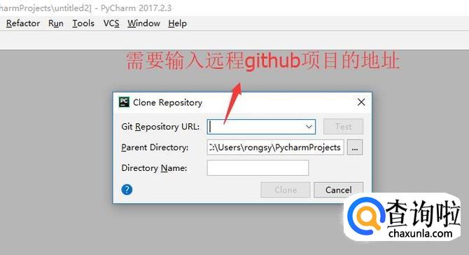 接下来需要输入Git仓库的远程地址,大家可以登录Github去查询,如下图所示