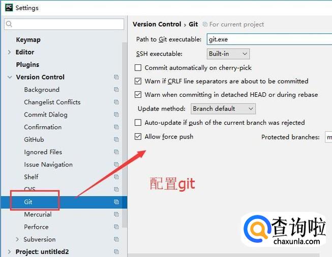 接下来切换到Git选项卡,配置一下Git仓库的信息,如下图所示