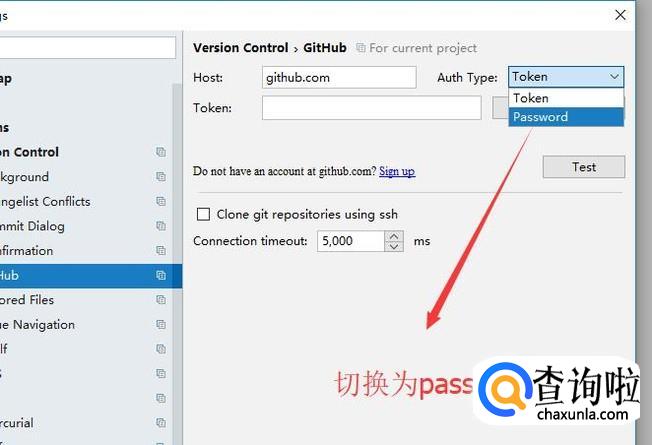 然后在右侧将Auth Type的选项由Token切换到Password选项,如下图所示