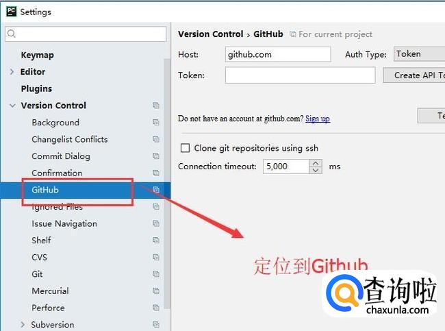 接下来会弹出Settings设置界面,我们选择Version Control选项下面的Github选项,如下图所示
