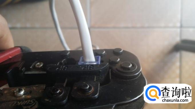 再把网线头插入网线前的8P口,不要插反,要插到底,过程中注意不要使线头脱离水晶头,然后用力压下网线钳,保险起见再放进去压一遍。