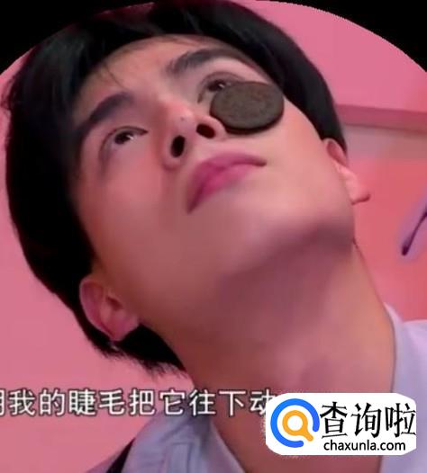 第一步,饼干的包装拆开,然后呢取出一块饼干放在自己的眼睛下面