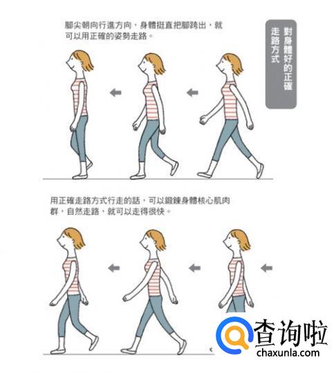 我们正常人或者准确的走路姿势应该是双眼平视前方,头微昂,颈部是正直的,双脚脚弓平行向前。