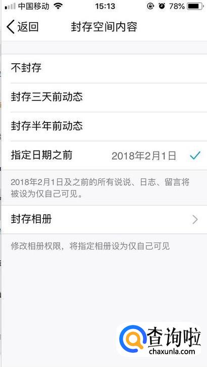 进去后往下拉会看到一个封存空间动态内容的功能。