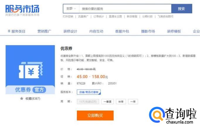 如果没有订购优惠劵的话需要去服务市场上订购。成功订购官方优惠劵后,可以进入【卖家中心】-【店铺营销工具】-【优惠券】,选择店铺优惠券/商品优惠券进行创建。