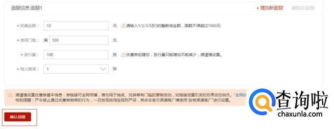 官方渠道推广类型的优惠券均无法提取链接,且不能主动结束或删除,只能等待活动自然结束,同时也会占据100个模板的额度,请一定谨慎设置。