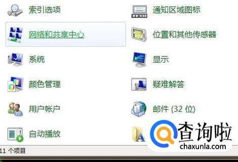 接着点击网络和共享中心,如图所示。